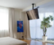 представляет собой современное специальное крепление для ТВ, которое вполне возможно разместить телевизор на потолке. Данное крепление позволяет регулировать угол наклона и поворот телевизора, дает возможность пользователям максимально безопасно и надежно закрепить телевизор на потолке, а не, к примеру, поставить на тумбу. Данная модель является прочной, а также качественной, благодаря тому, что изготовлена из высокопрочной стали. Сегодня именно такое размещение телевизора в комнате считается наиболее стильным и удобным, ведь оно не занимает в помещении много места.