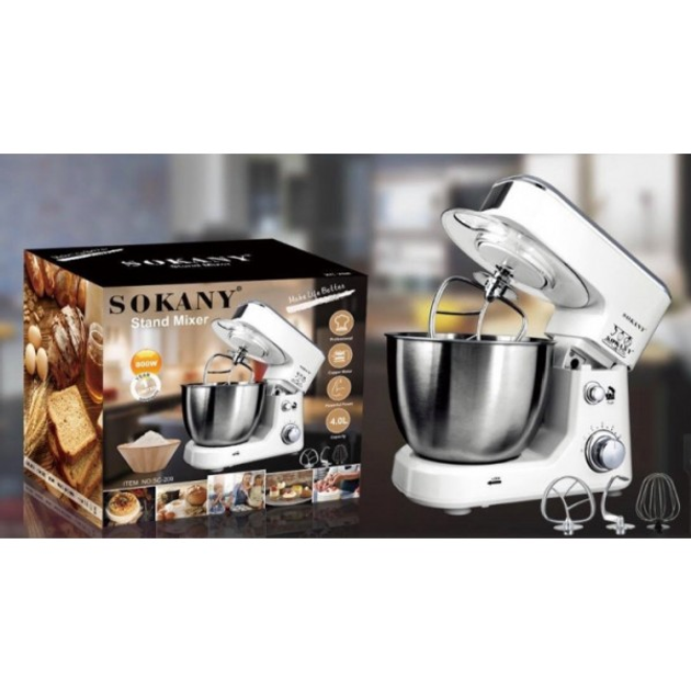 Sokany SC-209 – это устройство 3 в 1 – мощный и стильный кухонный комбайн + планетарный тестомисс + миксер. Настольный планетарный тестомисс миксер Sokany SC-209 настоящий кухонный чудо-помощник, который все равно отлично подойдет и для дома, и для профессионалов в области кулинарного искусства. Он прекрасно вымесит фарш, легко замесит самое густое дрожжевое или песочное тесто, взобьет крем необходимой консистенции, а также позволит быстро взбить белки для бисквита до нужных острых пиков.