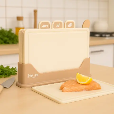 Набор разработочных досок Zepline ZP-00220 Brown Style – это сочетание практичности, уюта и современного дизайна. В комплекте входят 5 предметов: четыре доски для разных типов продуктов (мясо, рыба, овощи, хлеб) и эргономичная подставка для опрятного хранения.