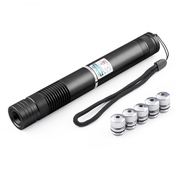 Синий лазер 10000mW Pro (445nm) YX-B008 с дополнительными насадками - зажигает спички, прожигает пластик, бумагу и ткань! Фиксируемая в рабочем положении кнопка фиксации (кнопку уже не нужно постоянно придерживать пальцем). Поставляется дополнительно со сменными насадками "Звездное небо"