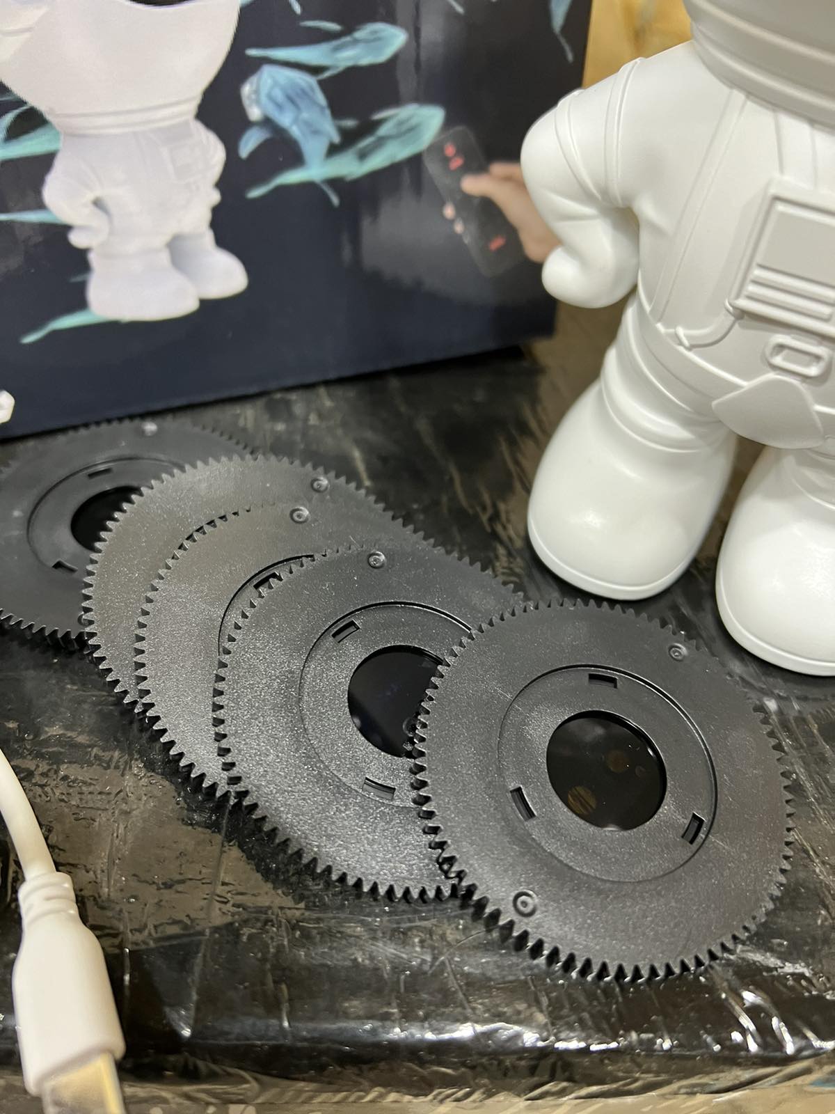 Характеристики и преимущества Ночника Astronaut LED: Изготовлен ночник Astronaut из прочного пластика, устойчивого к ударам и позволяющего сохранить целостность LED-лампы при падении. Материал экологичен и не имеет неприятного запаха, благодаря чему безопасен для детей. Пластиковая основа, имитирующая лунную поверхность, максимально устойчива, так как обладает сбалансированным центром тяжести. Руки астронавта могут вращаться на 360 градусов с возможностью фиксации положения. Голова соединена с туловищем магнитными коннекторами, что позволяет менять ее положение в радиусе 90 градусов. За счет этого изменяется и угол отображения проекции. Лампа LED Astronaut генерирует изображения Галактики и звездного неба высокой четкости и яркости.   Важно! Ввиду того что источник света достаточно мощный, смотреть прямо в проектор не рекомендуется, чтобы не создавать напряжения на сетчатку глаза.   Функционалом устройства предусмотрено два способа управления: Посредством кнопок на ранце астронавта. Первая предназначена для включения/деактивации LED-лампы. Вторая переключает цвета туманностей, при длительном нажатии отключает опцию отображения туманности. Третья кнопка предназначена для управления звездным небом. С ее помощью регулируется частота мерцания звезд. Через пульт дистанционного управления.