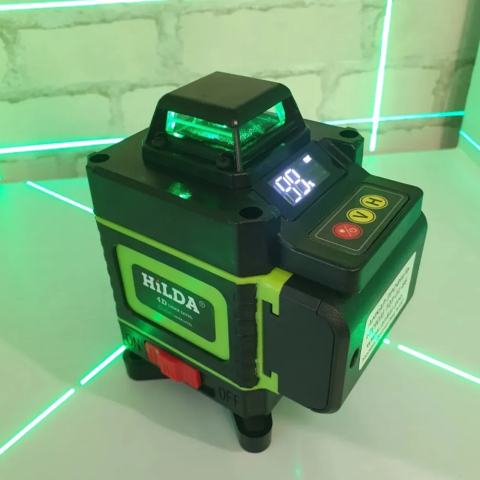 Лазерный уровень нивелир для стяжки пола HILDA 4D 16 линий 360°С самовыравнивается Зеленый луч + пульт + аккумулятор с дисплеем