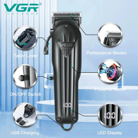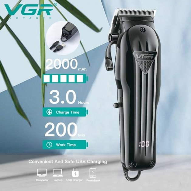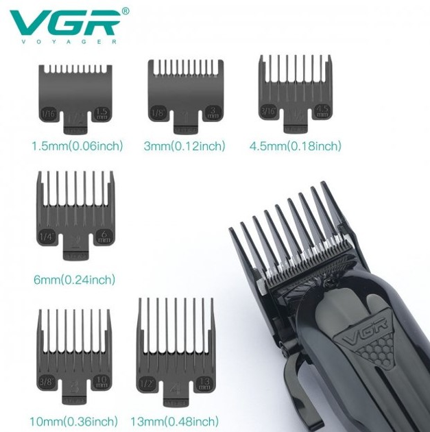 Машинка для стрижки волос VGR V-282 6 насадок, LED Display