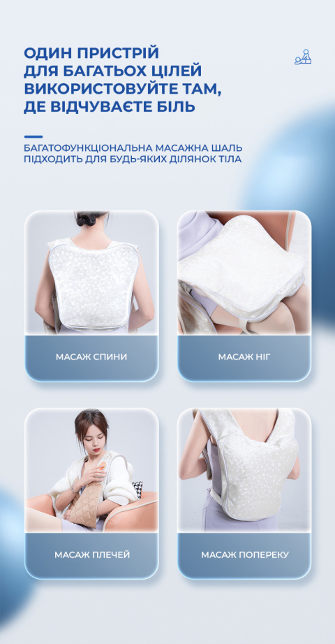 Массажер для шеи, плеч и спины электрический с подогревом / Вибромассажер, массажная подушка-накидка