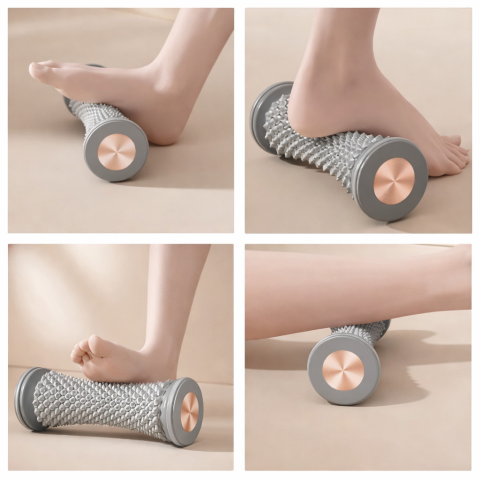 Поставьте стопу на ролик и плавно прокатывайте вперед и назад 5–10 минут. Интенсивность регулируется силой нажатия.