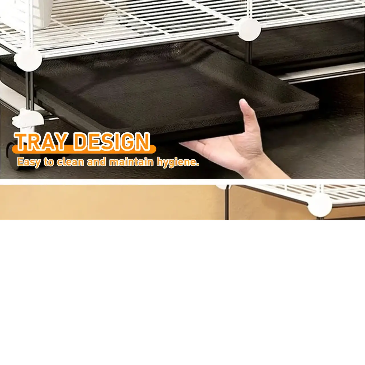 Чтобы очистить дно клетки, просто снимите крышку. Кроме того, все полки можно легко снять для очистки, что обеспечит безопасность ваших домашних животных и сохранит чистую и аккуратную среду.