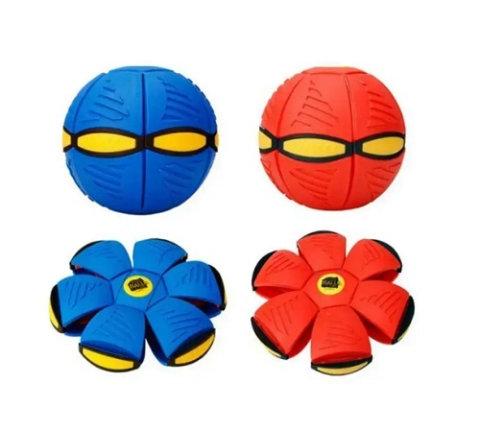 Превращается из плоского летающего диска в круглый мяч. Нажмите на мяч, и он снова трансформируется в диск, который легко помещается в сумку или рюкзак.