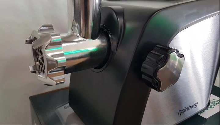 Электрическая мясорубка Rainberg Мощность 3800 Вт предназначена для изготовления фарша из мяса, рыбы, грибов, нарезки овощей и фруктов, профилирования песочного и пельменного теста.