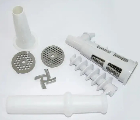 Корпус мясорубки изготовлен из прочного пластика, на нижней части корпуса расположены прорезиненные ножки для дополнительной устойчивости.