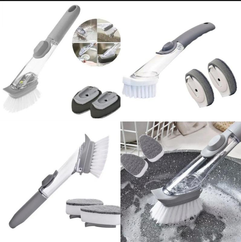 1 x Многофункциональная щетка для мытья посуды DTMA с дозатором и насадками Серая;