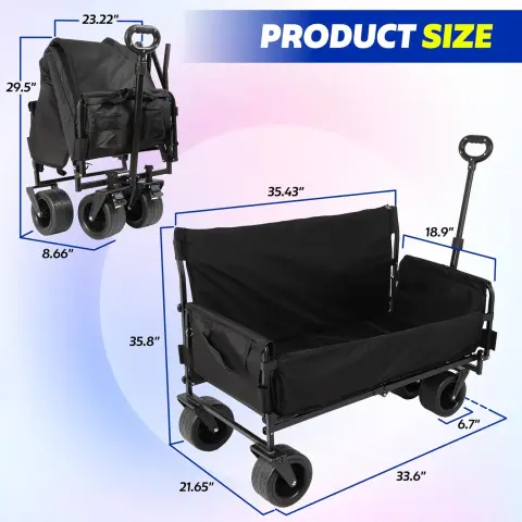 Эта тележка на колесах складывается в считанные секунды и легко помещается в багажник автомобиля или багажное отделение. (размер в сложенном виде: 23,22*8,66*29,5 дюймов) Легко переносить и хранить, экономит время и силы.