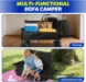 Конструкция кемпера с боковым открыванием позволяет быстро разложить его в диван или кресло за 5 секунд с помощью системы защелок и липучек. Кресло-реклайнер с регулируемой спинкой позволяет изменять угол наклона в разных положениях, что позволяет использовать его как стандартный диван под углом 90° или полностью разложить в импровизированную кемпинговую кровать (размер 54 дюйма*18,5 дюйма).