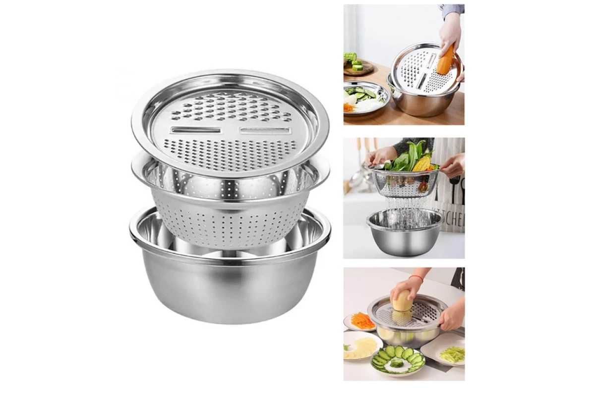 Терка многофункциональная, дуршлаг и миска для смешивания из нержавеющей стали