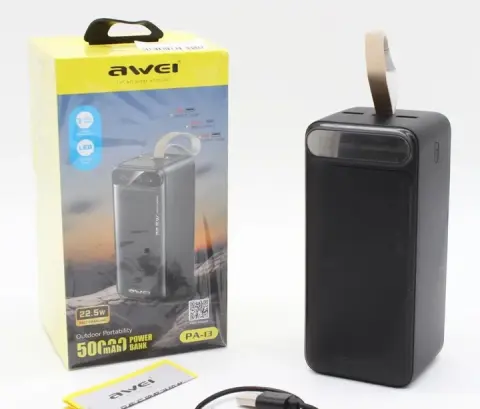 AWEI PA-13 – это мощный и надежный внешний аккумулятор большой емкости, идеально подходящий для путешествий, активного отдыха и повседневного использования. Благодаря аккумулятору на 50000 mAh вы сможете многократно заряжать смартфоны, планшеты и прочие гаджеты без доступа к розетке.