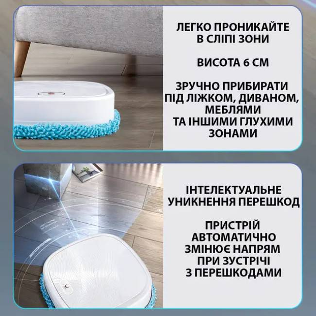Робот-пылесос оснащен прочной, мягкой сухой салфеткой, предотвращающими вторичное загрязнение и обеспечивающими чистую и тихую работу. С тонким корпусом толщиной всего 6 см он легко маневрирует в узких местах и под мебелью, обеспечивая высокую гибкость и маневренность. Преимущества этой модели включают в себя повышенную эффективность уборки, длительное время работы, низкий уровень шума, предотвращение вторичного загрязнения и удобство использования с резервуаром для воды. Этот компактный и мощный робот-пылесос подходит для сухой и влажной уборки, делая процесс уборки дома легким и удобным.