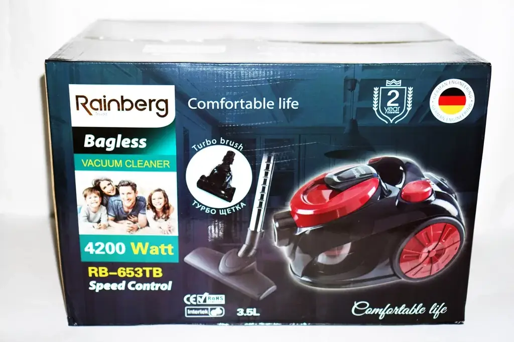 Мощный контейнерный пылесос с турбощеткой Rainberg RB-653 TB 4200W. Колбовый пылесос без мешка для квартиры