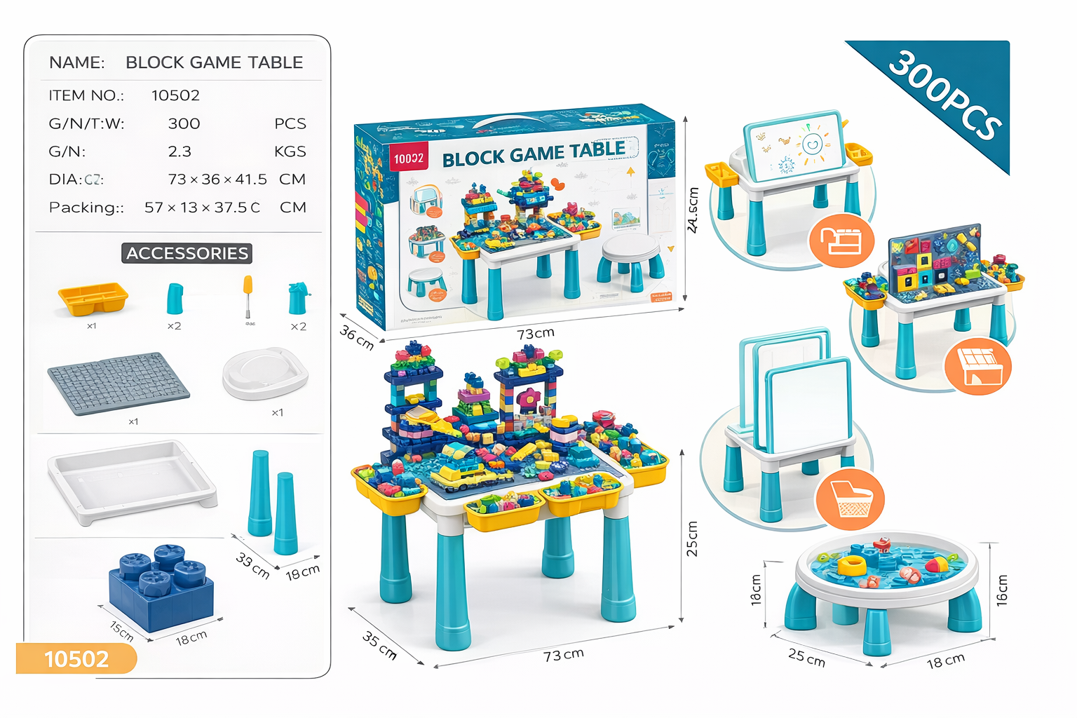 Многофункциональный детский игровой столик 6-в-1, 300 деталей