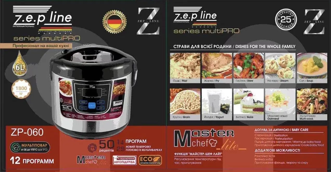 Мультиварка Zep-Line 12 программ 1800 Вт Жарка, тушение, на пару, йогуртница