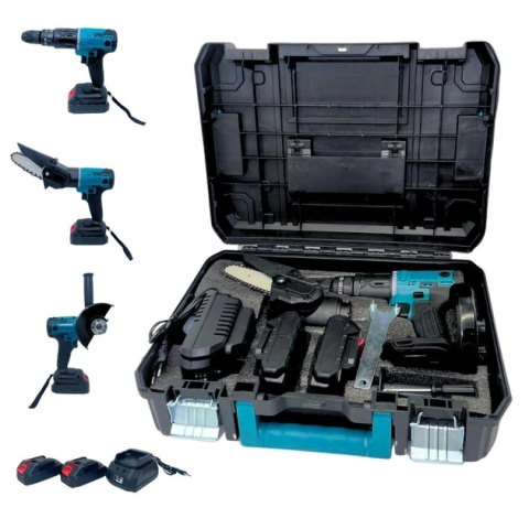 Набор аккумуляторных электроинструментов 3в1 шуруповерт турбинка мини пила с 2 аккумуляторами в кейсе