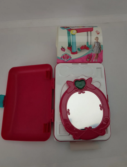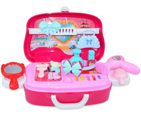 Детский игровой набор Салон красоты — каждая маленькая девочка мечтает о своем укромном местечке, где она бы могла играть, смотреться в зеркало и наводить красоту. Игрушка представляет собой настоящий салон красоты, столик с зеркалом и набором аксессуаров. Трюмо компактно собирается в чемоданчик сумочку. Малышка сможет носить с собой свой маленький салон красоты.