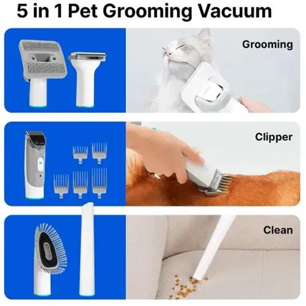 Набор для груминга PetChois GV1 White является устройством 5-в-1 по уходу за шерстью кошек и собак. Он включает различные насадки для вычесывания, тримминга и уборки шерсти, что позволяет эффективно ухаживать за питомцем и поддерживать дом в чистоте. Благодаря мощному мотору и тихому режиму работы, процедура груминга не пугает животных и делает процесс стрижки комфортным. Подходит для кошек и маленьких собак.