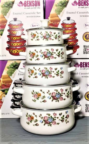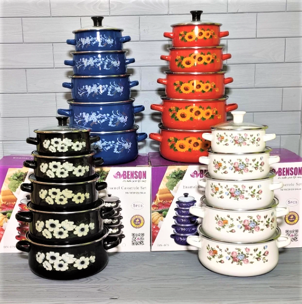 Набор эмалированных кастрюль с крышками Benson BN-079 черный (10 предметов) кастрюля Бенсон, Бэнсон