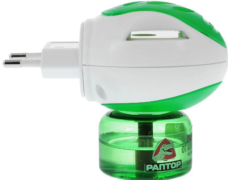 Комплект электро фумигатор Раптор с инновационной керамической пластиной. Фумигатор, который входит в комплект предназначен для использования как для жидкости, так и для пластины. Теплоэлемент фумигатора нагревает при помощи стержня рабочую жидкость, и заставляет ее испаряться. Когда концентрация в воздухе достигнет достаточной, произойдет уничтожение комаров. Данные пары остаются безвредными для человека и животных.