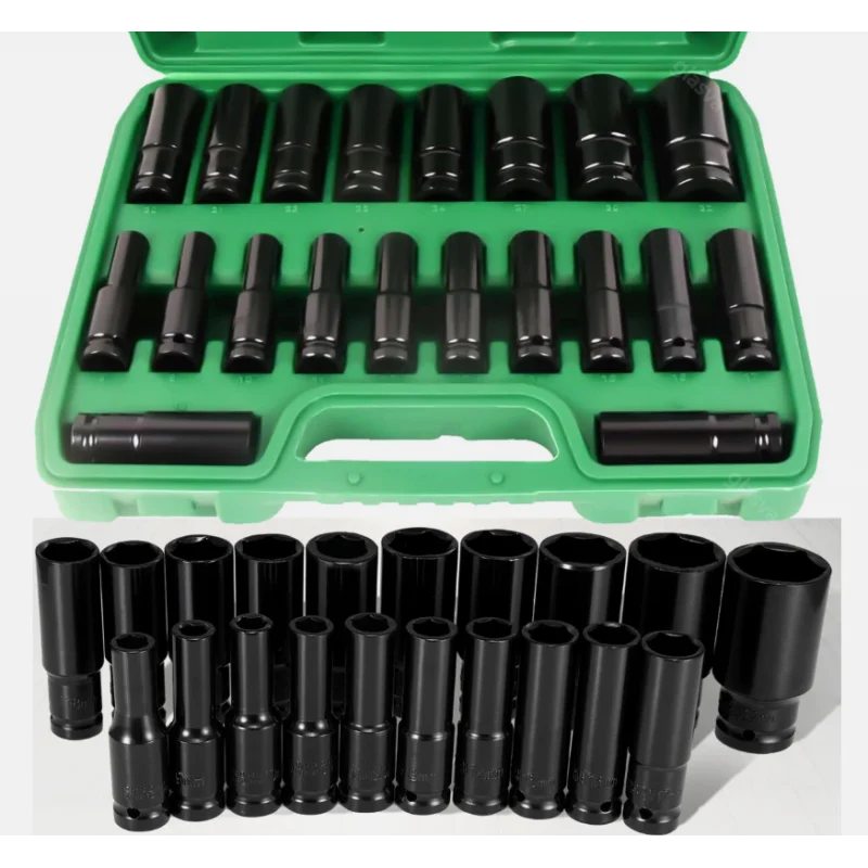Набор ударных головок 20 шт. 1/2 дюйма, метрический привод 8–32 мм, глубокий 6-гранный набор с кейсом