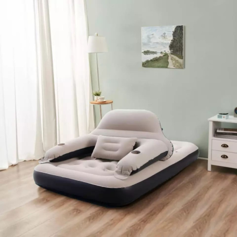 Многофункциональный надувной матрас-диван – отличное решение для дома, дачи, поездок и приема гостей. Его эргономичная конструкция позволяет использовать его как полноценную кровать или удобный диван с регулируемым подголовником. Мягкое флокированное покрытие приятно на ощупь и предотвращает скольжение кровати, а внутренняя система воздушных камер равномерно распределяет нагрузку, обеспечивая максимальный комфорт.