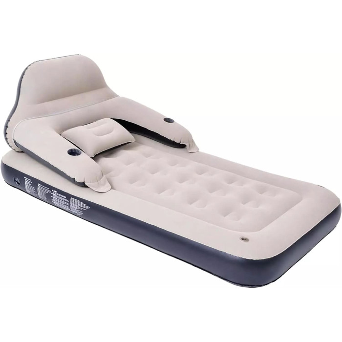 Матрас легко надувается и сдувается, занимая минимум места в сложенном виде. Он легок и удобен для транспортировки, что делает его идеальным для путешествий и кемпинга. Встроенные подстаканники придают удобство, а прочный материал выдерживает нагрузку до 100 кг.