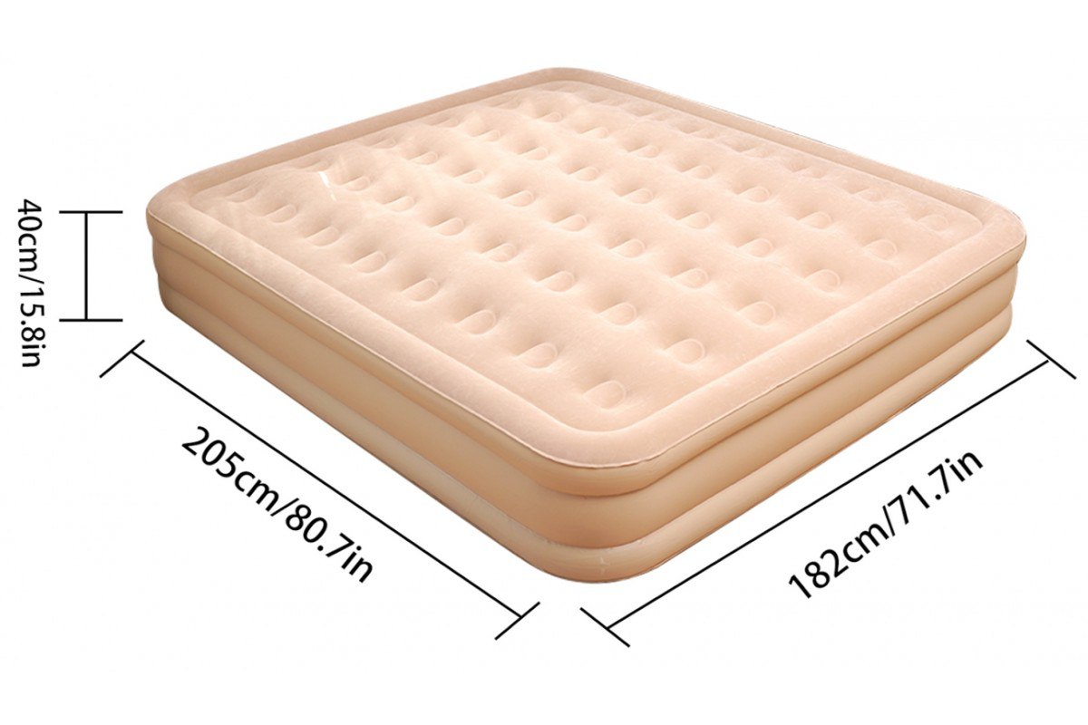 Повышенная высота (40 см): обеспечивает больший комфорт и изоляцию от пола по сравнению со стандартными надувными кроватями.