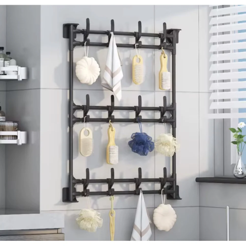 🔹 3 уровня крючков — удобно размещать полотенца, мочалки, щетки, аксессуары
