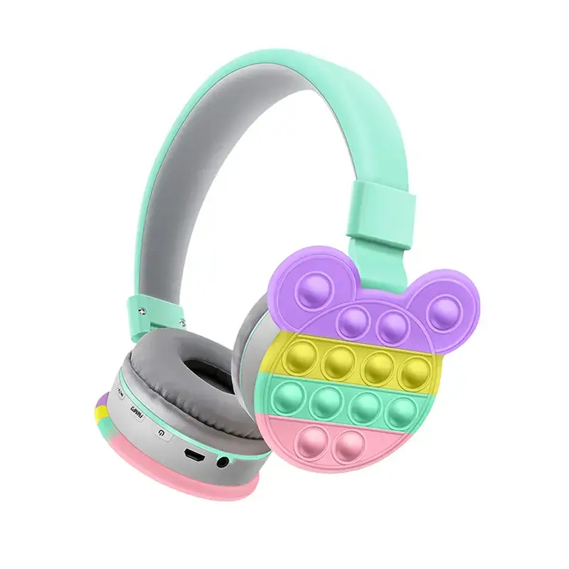 Bluetooth наушники в дизайне популярной игрушки - Pop IT. Bluetooth 5.0. Bluetooth стерео накладные наушники с поддержкой проводного подключения. Отличный насыщенный и сбалансированный звук. Особое внимание конструкторы уделили обеспечению баланса звука и плавным переходам, чтоб не перегружать детские уши.