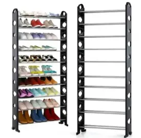 NEW Железная вешалка для одежды + подставка для обуви, 2 в одном, 4 полки Черно-белый