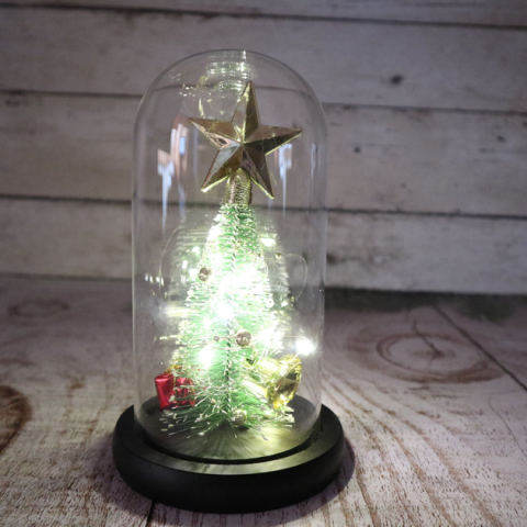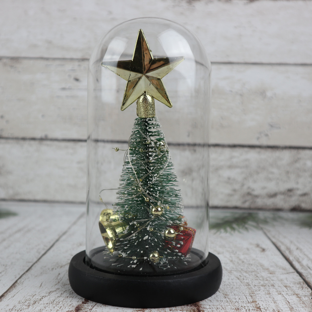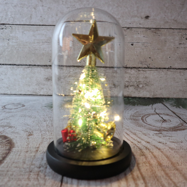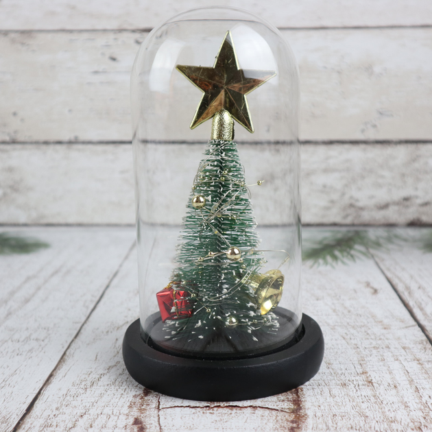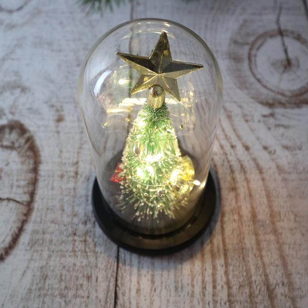 Ночник новогодняя елка в стеклянной колбе gold star