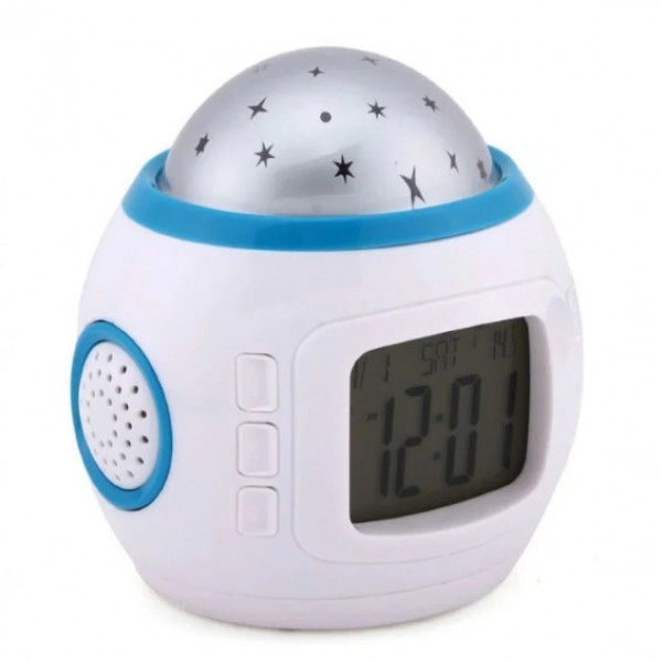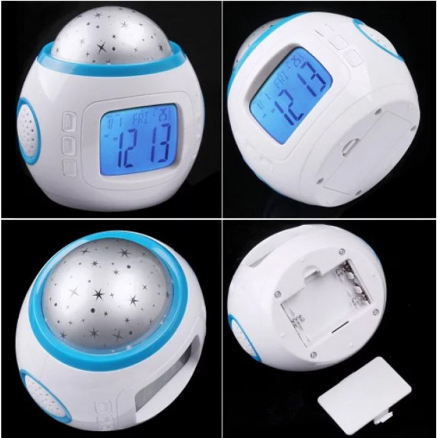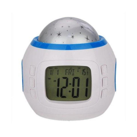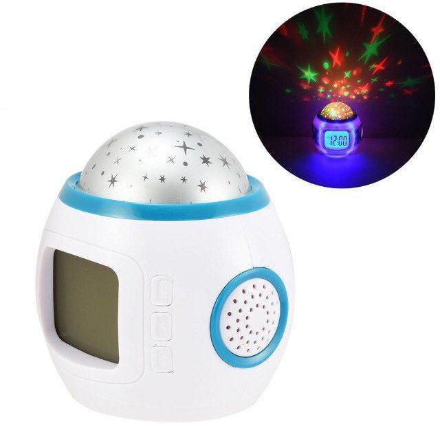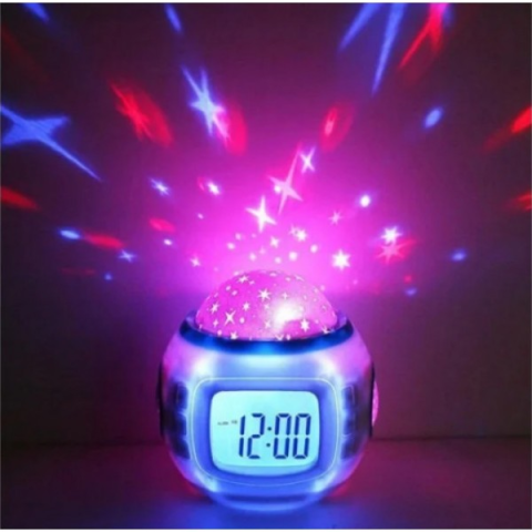 Это новый ночник проектор звездного неба с часами. Он подарит вам разнообразие цветов и эффектов с помощью множества интересных режимов работы. Если вы хотите уснуть, включайте режим проекции белых статических звезд, если желаете устроить дискотеку – разноцветное мерцание и вращение. С новым проектором звездного неба с часами вы разнообразите свой досуг.