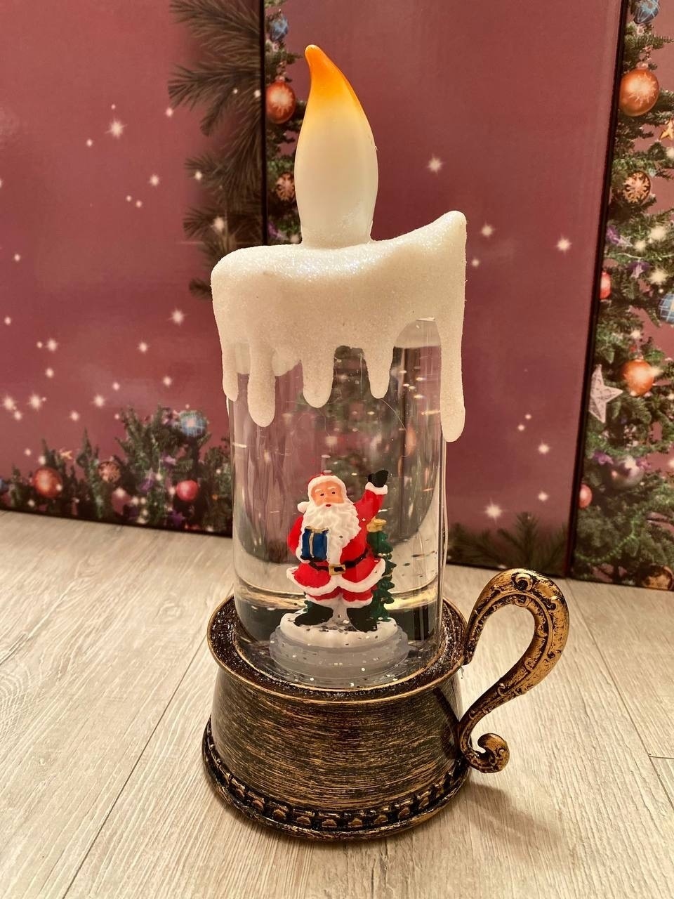 Фонарь оснащен LED-подсветкой и эффектом мерцания, который имитирует свет свечи, создавая теплое и атмосферное освещение. Мелодии новогодних песен усиливают чувство праздника, добавляя радости и веселья. Такой фонарь станет отличным украшением для вашего дома или незабываемым подарком для близких.