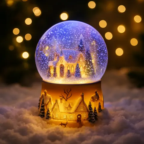 Уютная LED-подсветка: Встроенные LED-лампы мягко освещают зимнюю сцену, превращая декор в идеальный праздничный ночник.