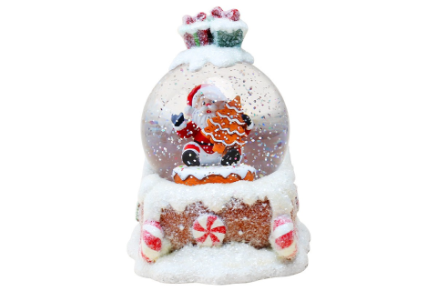 Новогодний фонарь выполнен в форме праздничного домика с декоративными элементами в стиле пряничного печенья. Внутри расположена композиция со снеговиком, елкой и фигурками в зимнем антураже. Фонарь оборудован LED-подсветкой теплых оттенков, музыкальным сопровождением с новогодними мелодиями и механизмом автоматического вращения блесток, создающих эффект конфетти. Изделие может работать от трех батареек типа AA или от сети через входящий в комплект USB-кабель. Благодаря высоте 26 см фонарь удобно размещать на полке, столе или под елкой как часть праздничной декорации. Модель изготовлена из полистоуна, что придает ей выразительность и детализацию. Фонарь упакован в подарочную коробку, которая обеспечивает удобство транспортировки и хранения.
