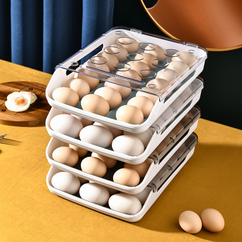 Ящик для яиц в холодильнике с однослойной конструкцией обеспечивает более стабильное яйцо в ящике для хранения, легко выдвигая лоток. Размер этой подставки для яиц составляет около 13,4 х 10,2 х 3,15 дюйма.