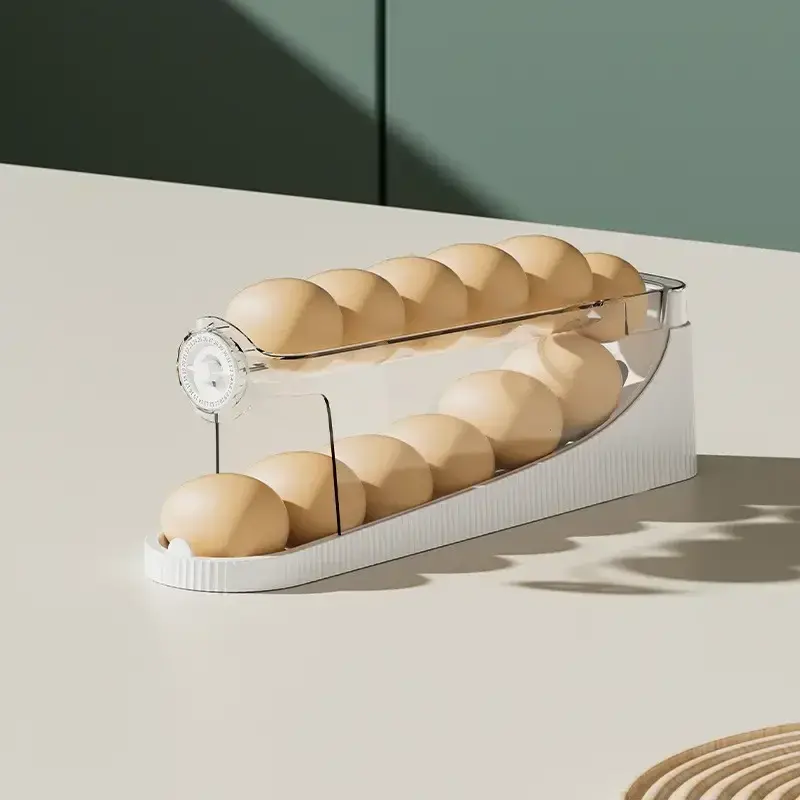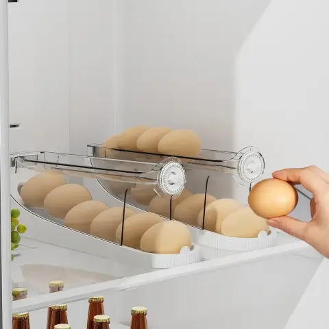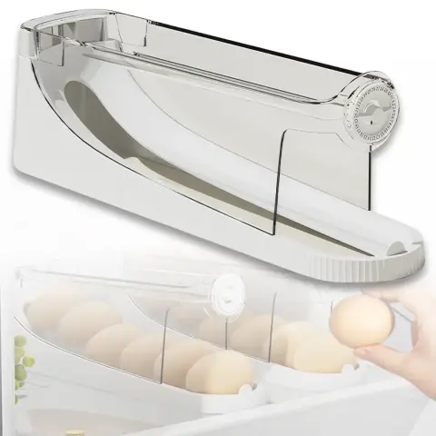 Полка для яиц – это инновационное решение для организации хранения яиц в вашем холодильнике. Двухслойная конструкция с функцией автоматической перекатки позволяет легко вытаскивать самые свежие яйца, в то время как другие аккуратно перекатываются вперед.
