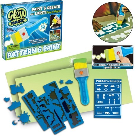 Палитра узоров GLOW MAGIC Набор для рисования Рисуй светом позволяет вашим детям рисовать светом на 2 листах светящегося холста, который со временем тускнеет. Больше никаких грязных красок в доме!