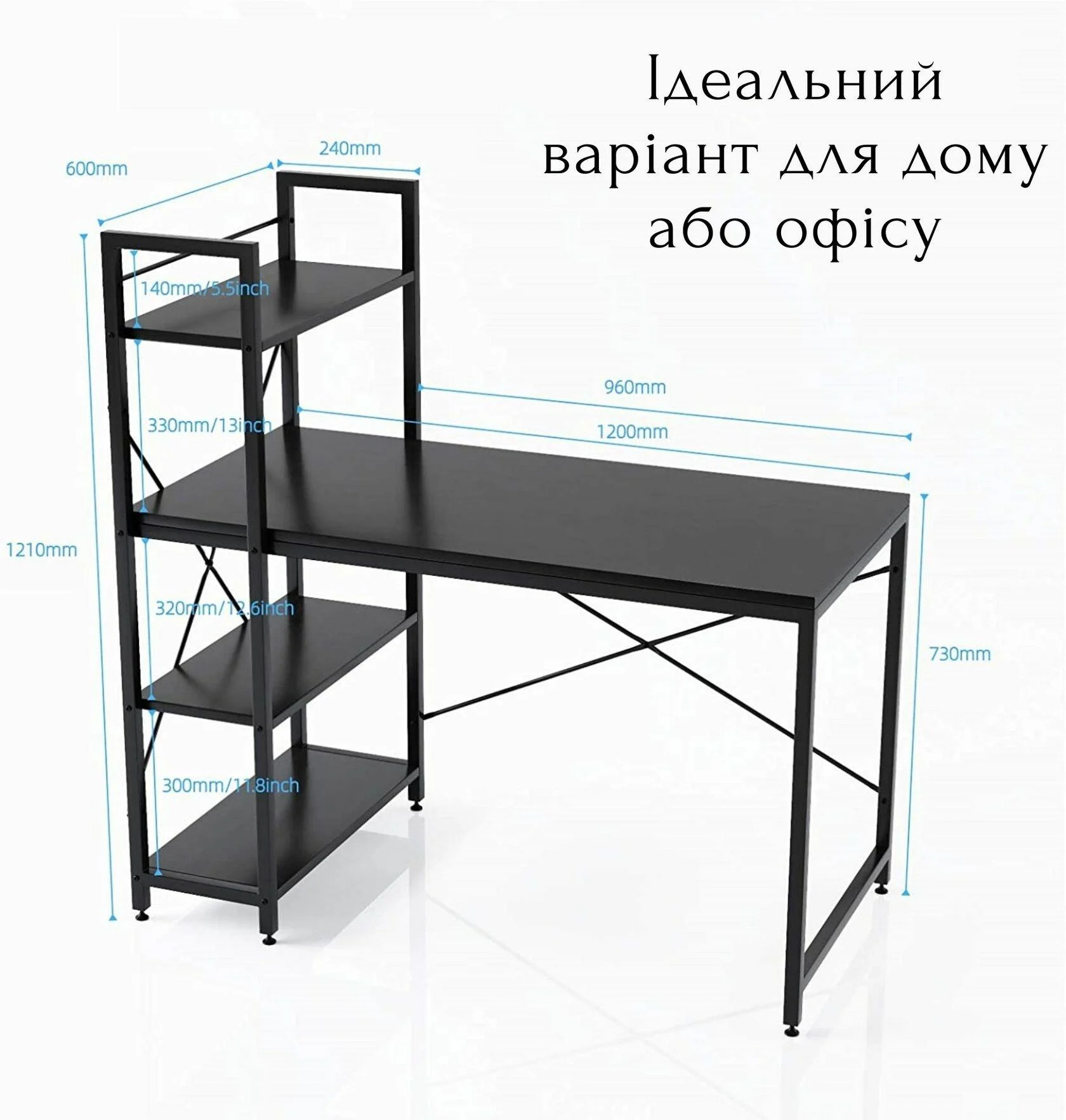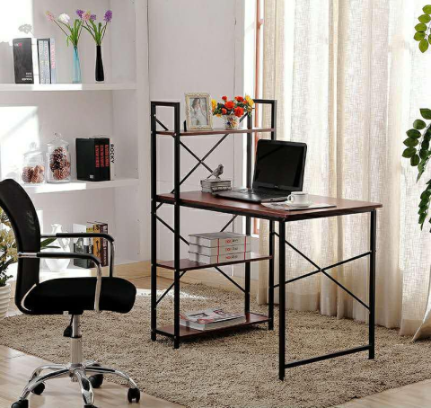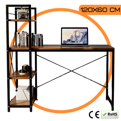 Письменный стол для компьютера и обучения / Рабочий стол с 4-ярусными полками 120 x 60 см