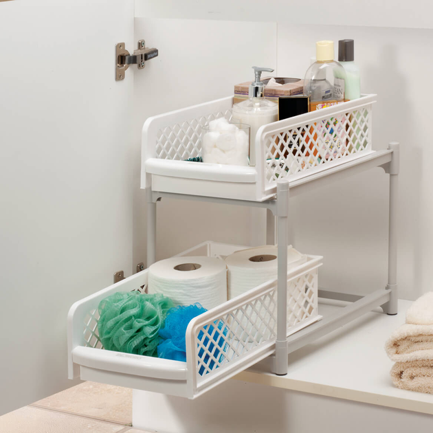 Пластиковый органайзер для ванной с 2 выдвижными полками, Portable 2 Tier Basket Drawers