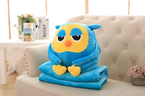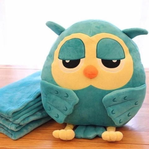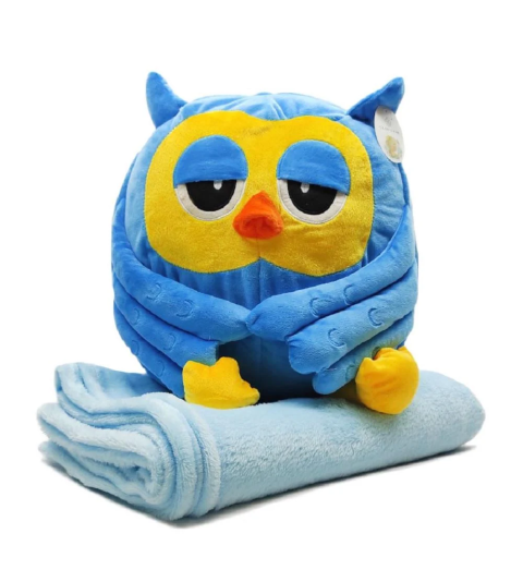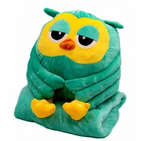 Очаровательная сова с теплым пледом, который аккуратно прячется внутрь игрушки, станет приятным подарком на любой праздник.