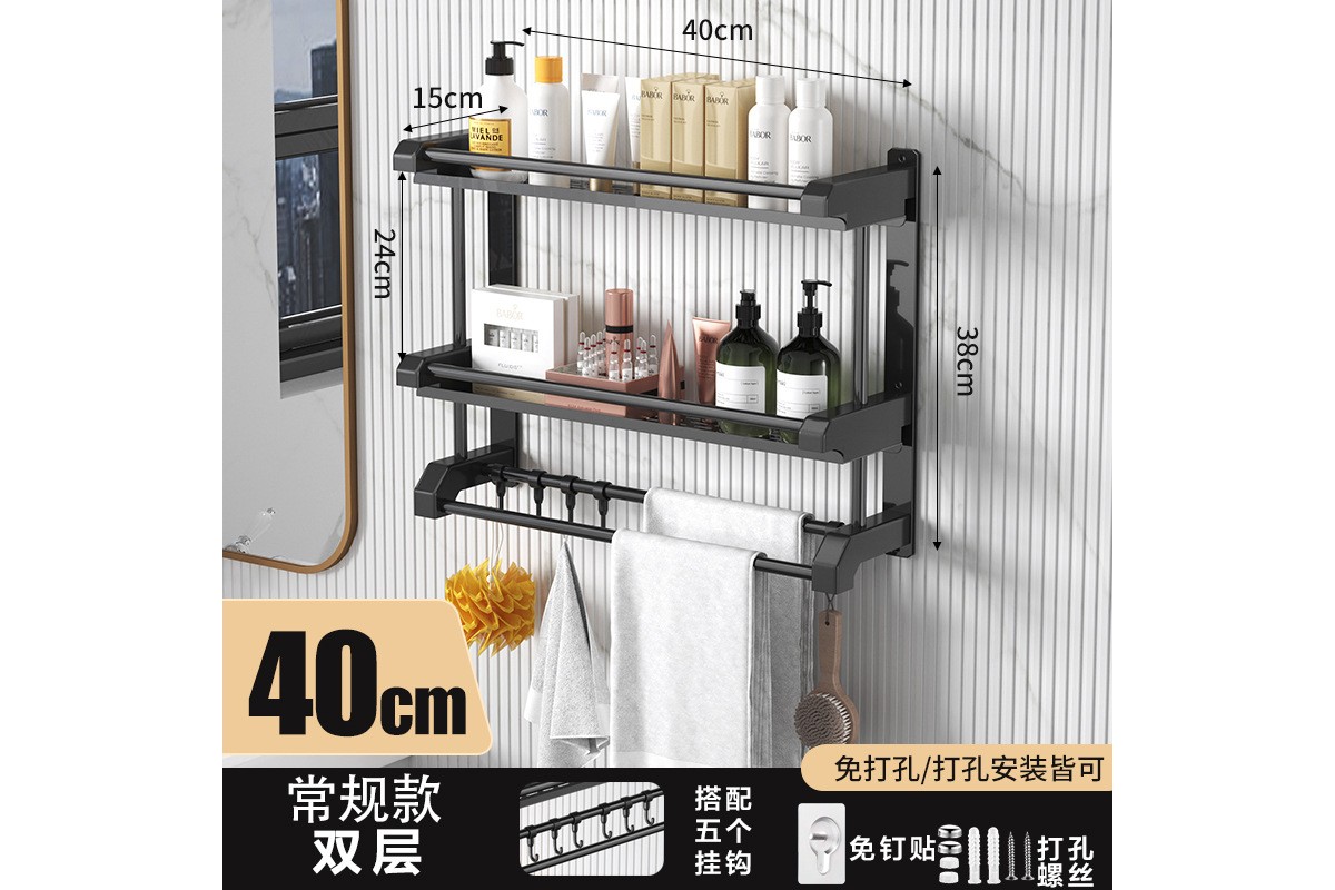 Полка для ванной комнаты с вешалкой для полотенец 40см
