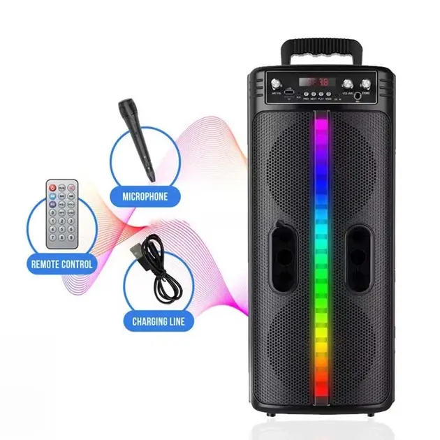 Портативная беспроводная Bluetooth колонка-караоке TTD-2806 RGB-подсветка, микрофон, пульт ДУ