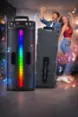 Яркая цветовая RGB-подсветка, создающая динамическую световую атмосферу. Подсветка изменяется в такт музыке, превращая колонку в эффектный элемент декора.
