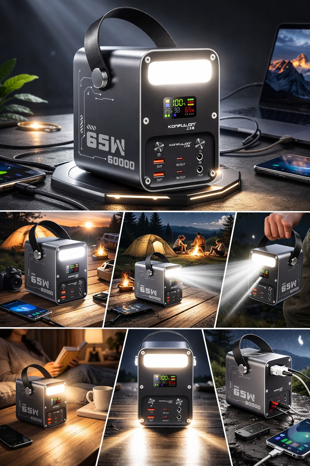 Портативная зарядная станция PowerBank 60000 mAh (PD 65W + 22.5W) с DC выходом + LED фонарь