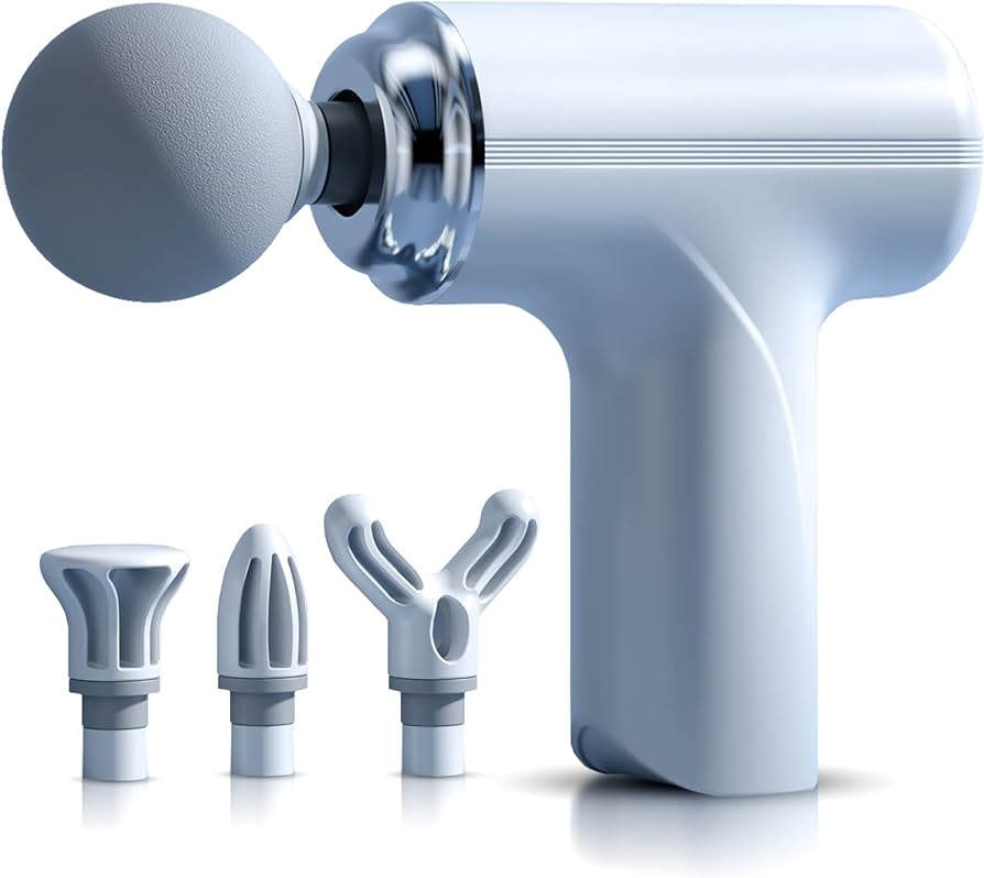 Портативный перкуссионный массажер 6 скоростей 4 насадки mini Massage Gun MG-203 для тела